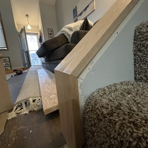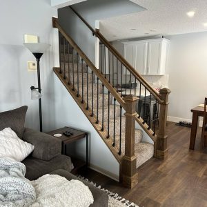 Or take another project that both my clients and I absolutely loved—a full staircase railing makeover. While I had never done this exact type of work before, that didn’t stop me. My clients had standard railings and balusters that completely clashed with their newly renovated space. They trusted me to redesign, choose materials, and select the perfect stain for their new oak railings.