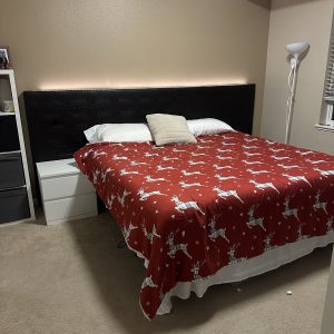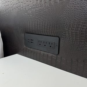 ✔ Smartly repositioned outlets—originally designed for a Queen bed, but now accessible for their King.
